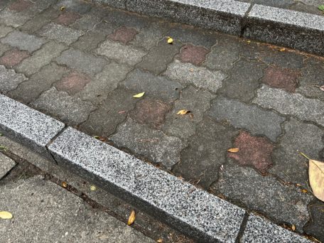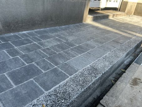 名古屋市名東区豊が丘にて玄関前の舗装材のレンガの部分に水が溜まりやすい為