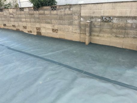 防草シートは耐久性の良いものを使用し、繋ぎ目から雑草が生えないようにザバーンの