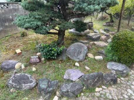 上の写真は、工事をする前で、こういった大きな松の木や、庭石・残土がかなりあった為、