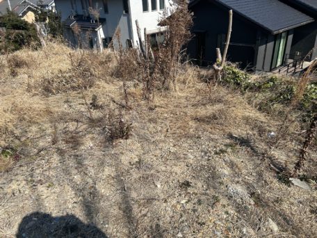 初めは、上の写真のように雑草が生え、土が凸凹の状態でした。